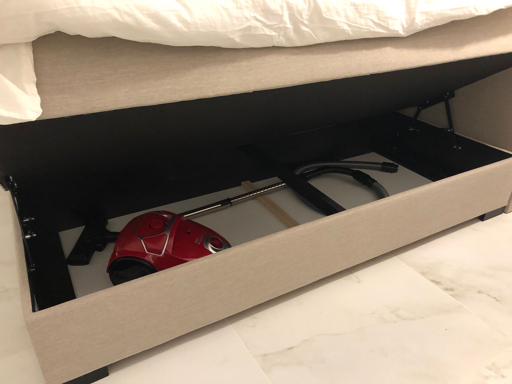 Twee kamers van 10 en 11m² met elk een ingebouwde kleerkast en respectievelijk 2 eenpersoonsbedden en 1 groot dubbelbed. Onder de matrassen bevinden zich opbergruimtes.